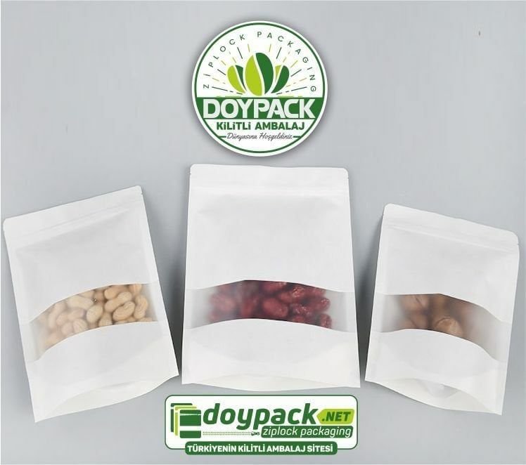 Beyaz Kraft Pencereli Kilitli Doypack