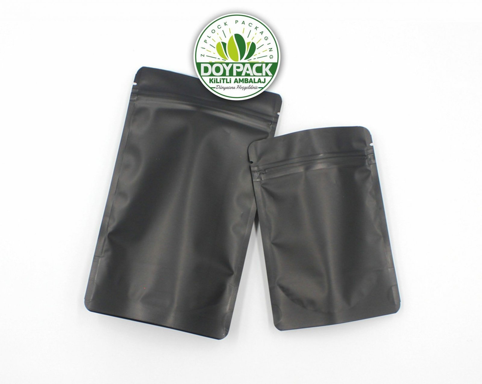 Mat Siyah Alüminyum Kilitli Doypack, kahve çekirdeği, çay, doğal ürünler, kraker, peynir, kurabiye, kuru meyve, şekerleme, cips, fındık, toz ürünler ve evcil hayvan yiyecekleri gibi birçok özel yiyeceğin yanı sıra solucan gübresi gibi yiyecek olmayan çeşitli malzemelerin saklanmasında kullanılır.